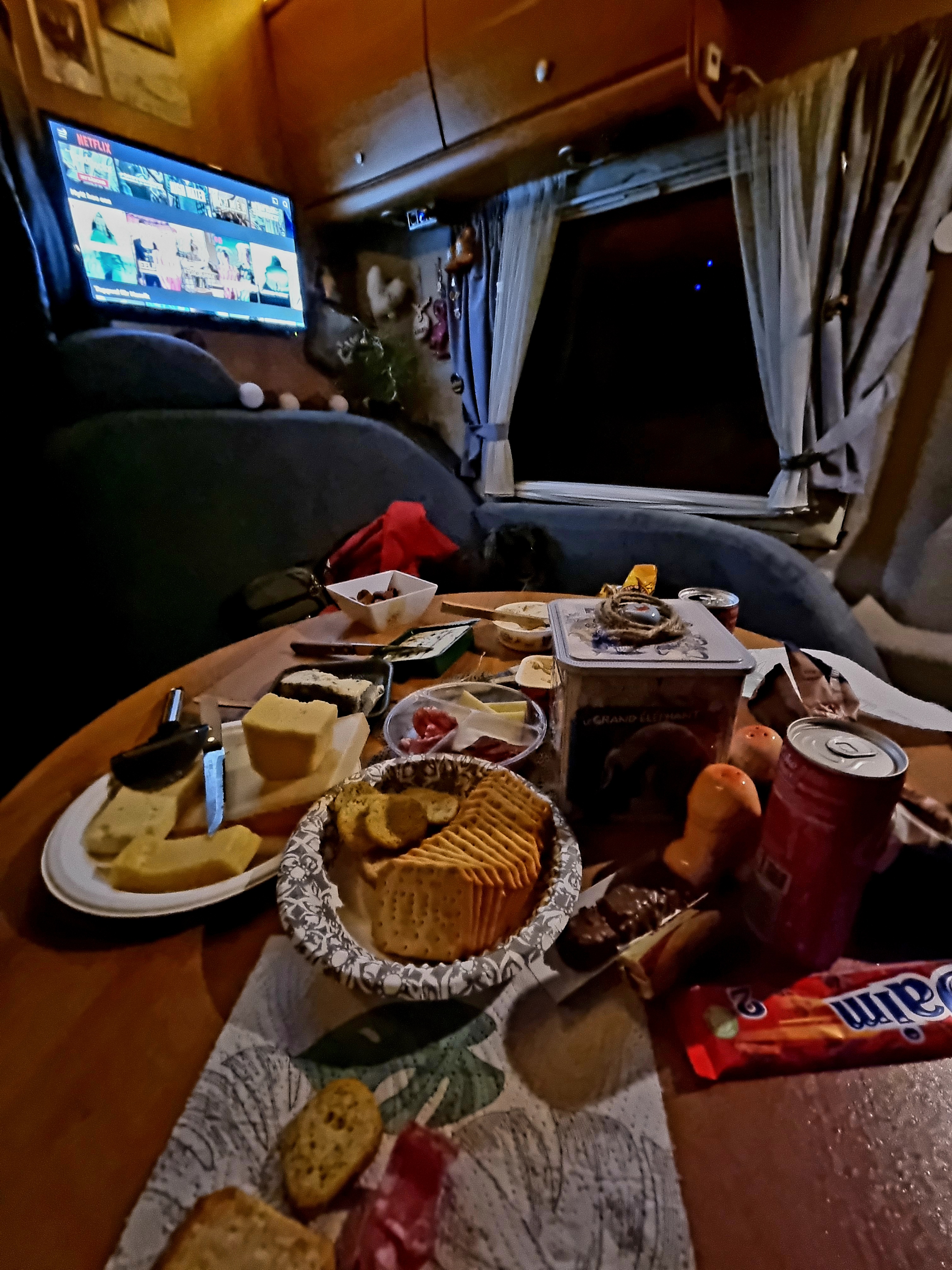 Efter god mat, en dag avdryga 16 km promenad så tog vi kväller med lite snacks och vin i husbilen.